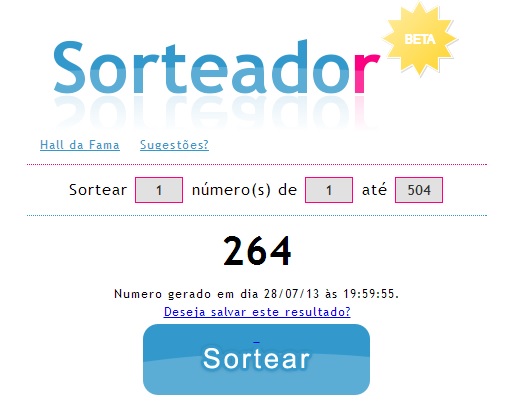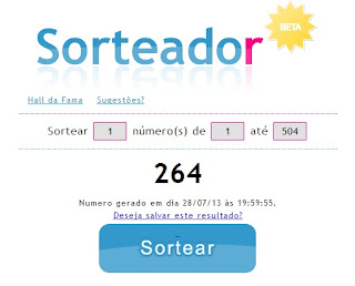 Vejam abaixo o resultado do sorteio, realizado pelo site www.sorteador.com.br:
